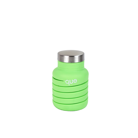 「que Bottle」は人体に影響を及ぼさない「安心素材」を使用しています。 大容量のボトルはもう要りません。いつでもどこでも気軽に飲み物を持ち運べます! 環境にも優しく、 独特の螺旋が見た目を損なうことなく折りたたむことができるファッショナブルなドリンクボトルがいよいよ日本上陸です。 100%BPAフリーのフードグレードシリコーン製で、プラスチックは一切使用していません。 人体にも地球環境にも優しい商品ですので、赤ちゃんやお子様の飲み物にも安心してご利用いただけ、環境保全にも役立ちます。