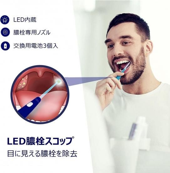 LED搭載: LEDで見えにくい膿栓の大きさや場所を確認できます。奥に隠れた膿栓も見逃しません