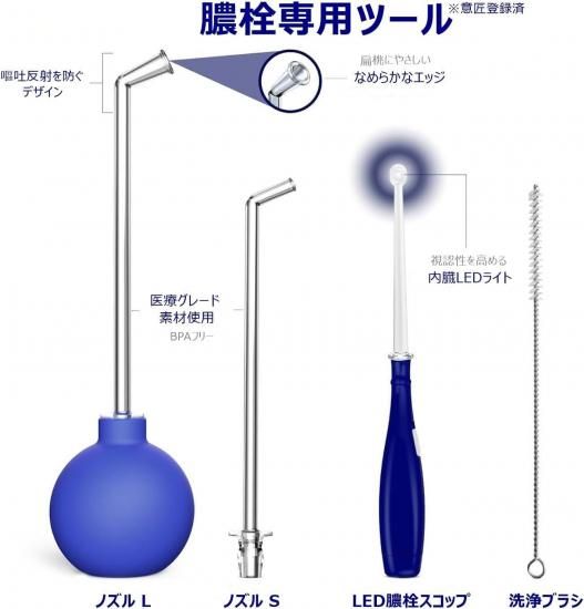 セット内容:膿栓吸引器/LED膿栓スコップ/ノズル洗浄ブラシ