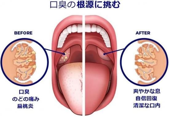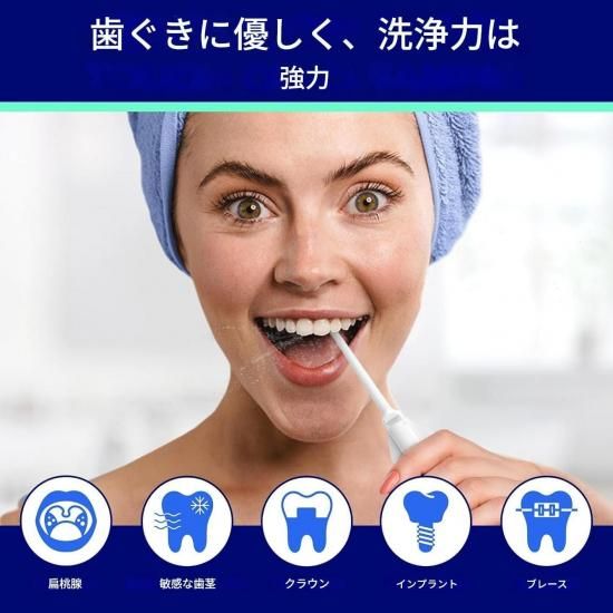 清潔&爽快な口内:膿栓や歯と歯の間に挟まった食物残渣を効果的に除去。2種類の交換式専用ノズル(膿栓用/歯間用)付属
